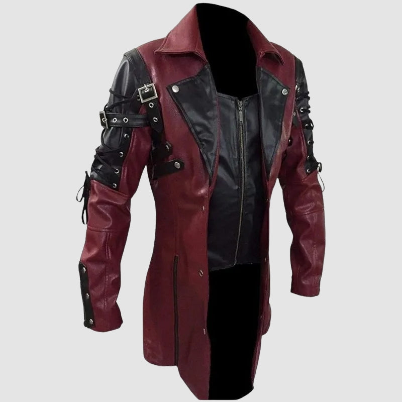 - Model: lange herenjas met imitatievest eronder